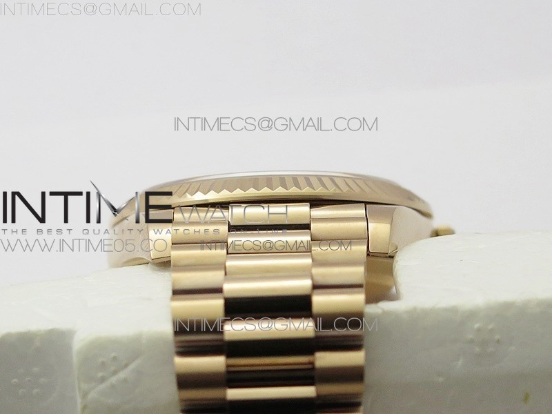 Case 18K Rose Gold Plated Solid 904L stainless steel, screw-in back and crown, deep and double line engraved rehaut, brighter and more accurate engravings, random serial number engraved at 6:00 of the rehaut. Different random serials