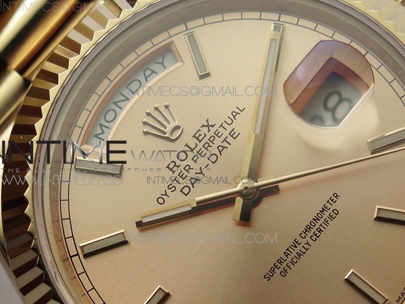 Case 18K Rose Gold Plated Solid 904L stainless steel, screw-in back and crown, deep and double line engraved rehaut, brighter and more accurate engravings, random serial number engraved at 6:00 of the rehaut. Different random serials