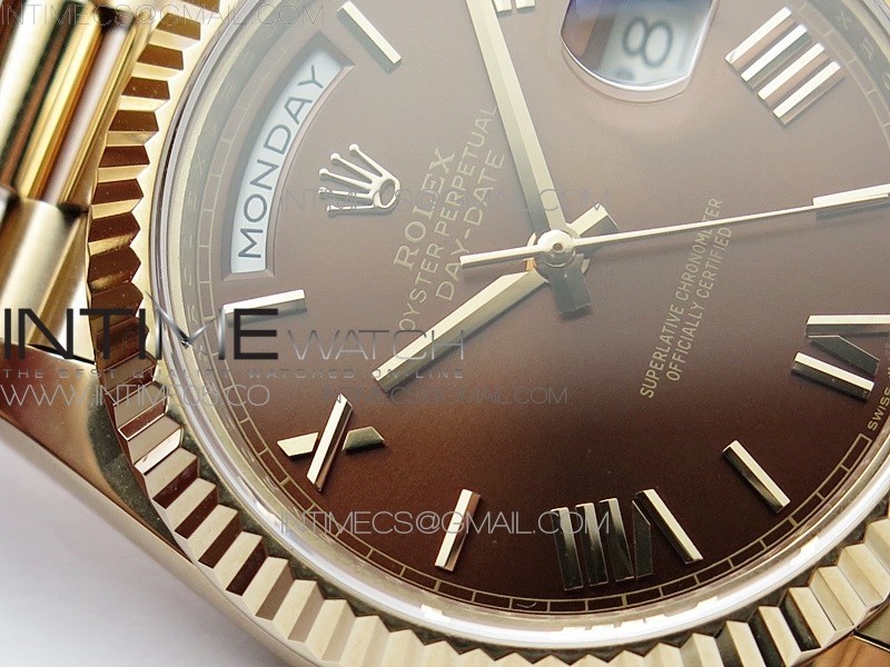 Case 18K Rose Gold Plated Solid 904L stainless steel, screw-in back and crown, deep and double line engraved rehaut, brighter and more accurate engravings, random serial number engraved at 6:00 of the rehaut. Different random serials