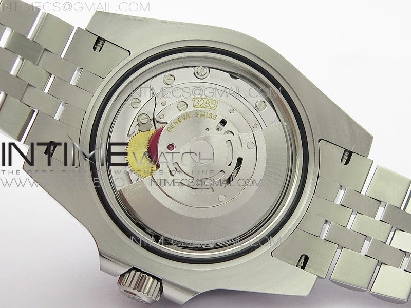 Movement Asian Super Clone 3285 Automatic Movement at 28800 vph, Correct Handstack, self-winding, independent adjustable hour hand to set the date, same adjusting as genuine