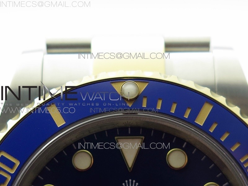 Bezel     18K yellow gold plated Uni-directional rotating Blue ceramic bezel