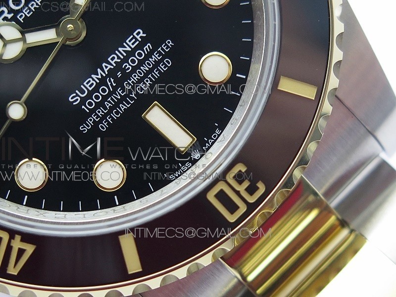 Bezel 18K yellow gold plated Uni-directional rotating Black ceramic bezel