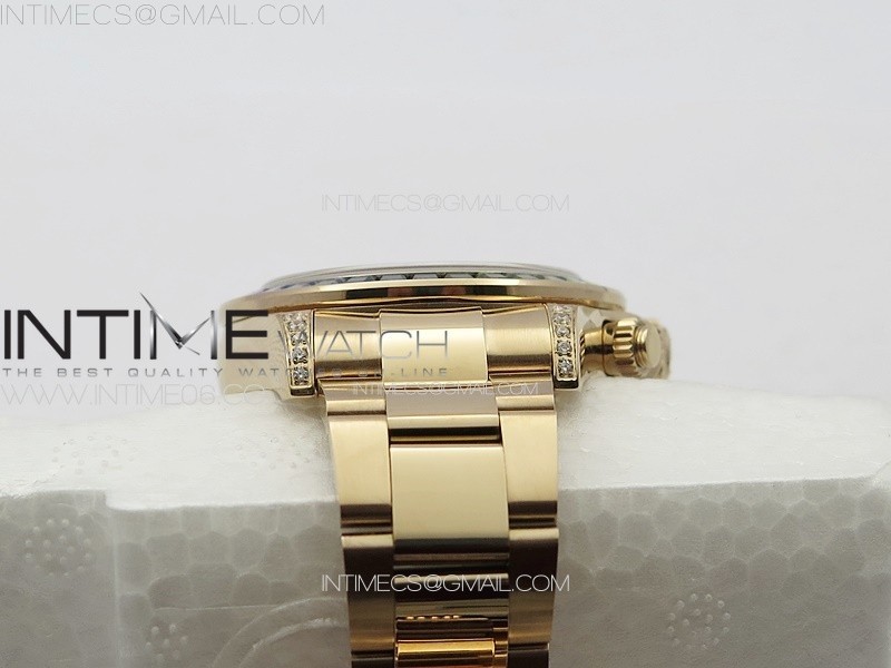 Case: 18K Rose Gold Plated Solid Stainless Steel 316L, Diamond on case same as genuine watch.